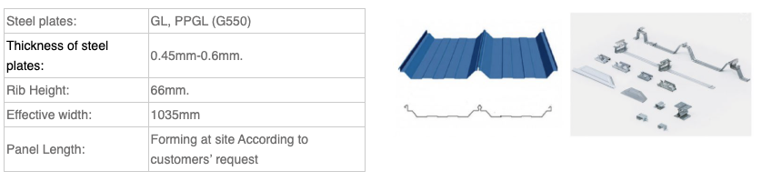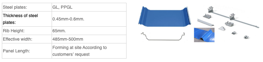 SEAMLOK-65 is 360 standing seaming roof system with 65mm high rib and online mastic application technology, which provides outstanding water tightness and air tightness performance. On-site roll forming is available and it can be applied to large-span roof.