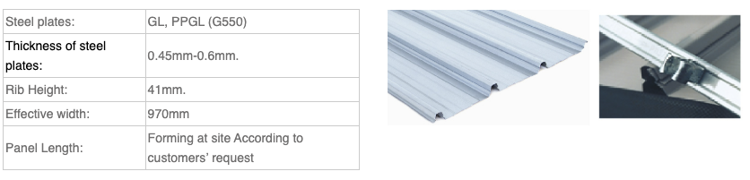 KLIPLOK-970 is the new generation of wide-cover, concealed-fixed cladding. It is corrugated steel roofing sheets needs to be installed by brackets, the screws are not exposed, It is easy and quickly installation, it is mostly used for on-site processing.