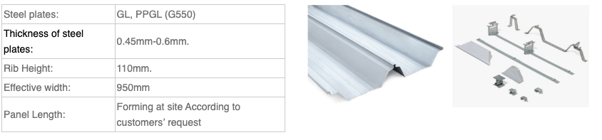 LOKSEAM-950 is the deepth rib profile of standing seam roof system(Concealed-fixed Roof System). It is steel roofing sheets to be installed by strong brackets, the screws are not exposed, it is used for large-span roofing with low slope, the drainage effect is excellent, it is mostly used for on-site processing.
